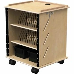 Luxor Laptop/Chromebook Computer Charging Cart For 18 Devices, 25"W x 21-1/4"D x 39-3/4"H, Black