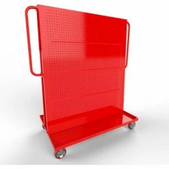 Valley Craft Modular A-Frame Bin Cart F89547 w/1 Louvered 1 Round-Peg Pegboard 36"W x 30"D x 62" Red