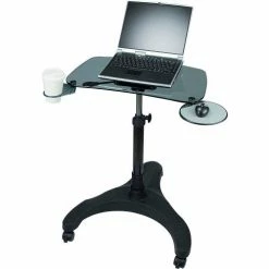 Aidata LPD010G Sit/Stand Mobile Laptop Workstation with Tempered Glass Top