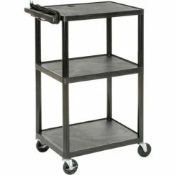 Luxor Plastic Audio Visual & Instrument Cart 24 x 18 x 42 Three Shelves – 250lb capacity