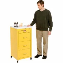 Harloff Mini-Line Tall Four Drawer Isolation Cart, Key Lock, Yellow – 3154K