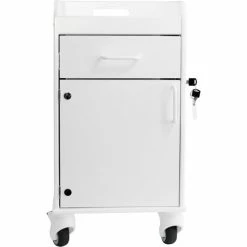 TrippNT Compact Bedside Cart, 1 Locking Drawer, White with White