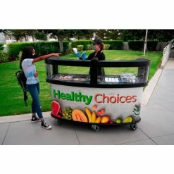 Cambro Vending Cart with Healthly Cart Laminated Wrap & Sneeze Guard, 75 1/8" x 33-1/2" x 53 1/8