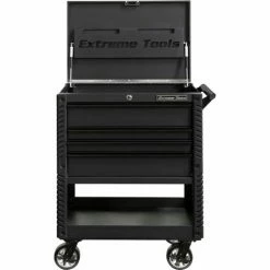 Extreme Tools EX3304TCMBBK 33"Wx22-7/8"Dx44-1/4"H 4 Drawer Matte Black Deluxe Tool Cart W/ Bumpers