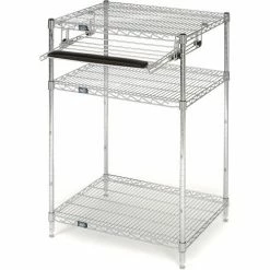 Nexel Chrome Wire Shelf Computer Workstation with Keyboard Tray, 30"W x 24"D x 34"H