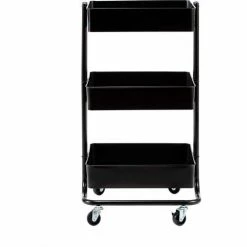 Seville Classic 3-Tier Rolling Steel Storage Bin Utility Kitchen Cart With Wheels, Black