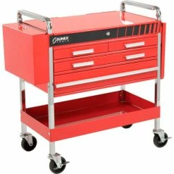 Sunex Tools 8013ADELUXE 4 Drawer Deluxe Red Tool Cart W/ Locking Top & Drawers