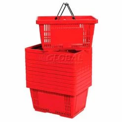 VersaCart ® Red Plastic Shopping Basket 28 Liter With Black Plastic Grips Wire Handle – Pkg Qty 12