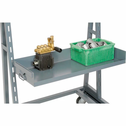 Use 15″D Trays on 24″ and 40″ D Trucks. 14 gauge powder coated steel.