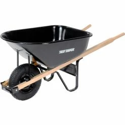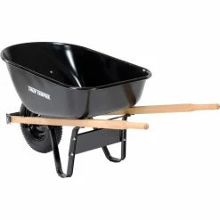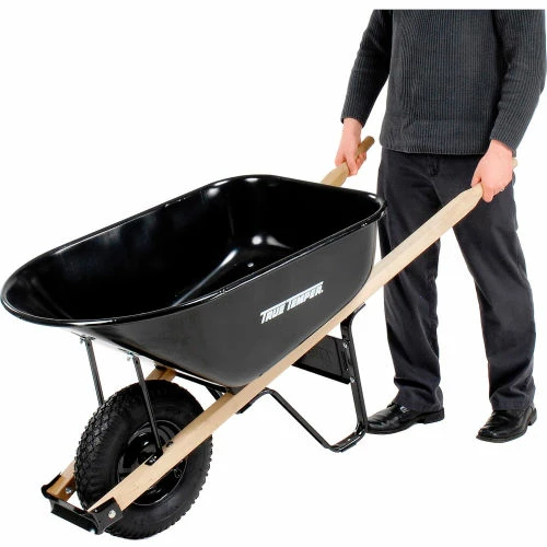 With 6 cubic feet of hauling capacity, this UnionTools® wheelbarrow is ideal for homeowners, landscapers and light construction work. The 6 cubic foot seamless steel tray is plenty tough and will provide years of service. Around the house or on the job, this is the right wheelbarrow for the job.
