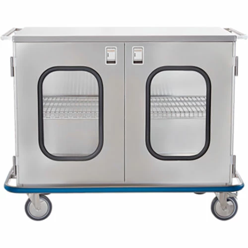 - Two double walled, channel enforced, welded, double hinged glass doors that swing 270 degrees.