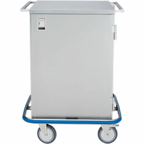 - One double walled, channel enforced, welded, double hinged stainless steel door that swings 270 degrees.