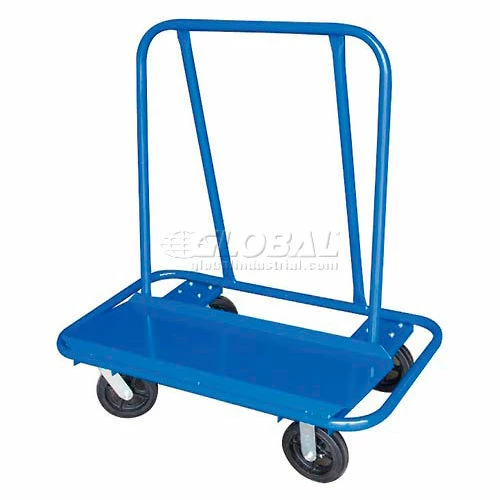 The indented back and open frame design of this dolly make it ideal for moving drywall, paneling and plywood around tight corners. Heavy duty 1-ΒΌ” tubular steel frame surrounds the entire chassis for added strength, and rounded corners help to prevent wall and doorway damage. Strategically angled deck and tubular steel uprights are designed to prevent load slippage. All-welded construction with a durable powder coat finish. Bolt-on 8″ mold-on rubber casters (2 swivel, 2 rigid) are easily installed and provide long-lasting performance.