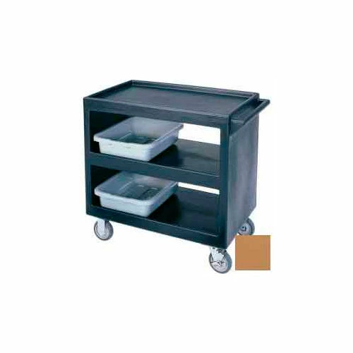 Service Cart, open design, three shelves, shelf size approximately 21″ x 32″, polyethylene exterior, 5″ casters (4 swivel, 1 with brake), 500 lb. load capacity, coffee beige, NSF