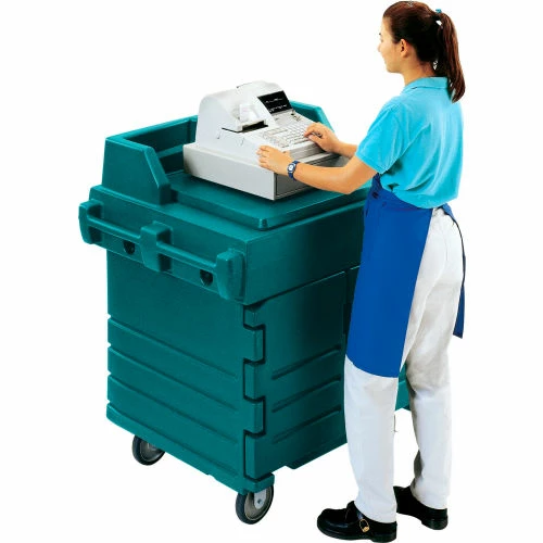 This Granite Green Camkiosk® Work Station is use to merchandise menu items or to complete sales transactions. Large dry storage cabinet below is perfect for storing supplies. Paper roll towel dispenser included. Extremely durable, comes with 2 fixed & 2 swivel casters, 2 with Brake.