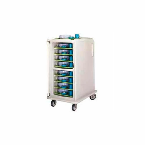 Meal Delivery Cart, tall profile, 1 door, 2 compartments, holds (16) 14″ x 18″ trays, 28″W x 36-1/2″D x 58-1/8″H, molded-in handles, 1 per end, 6″ s/s casters (2 rigid, 2 swivel with brake), granite sand with cream color door, NSF