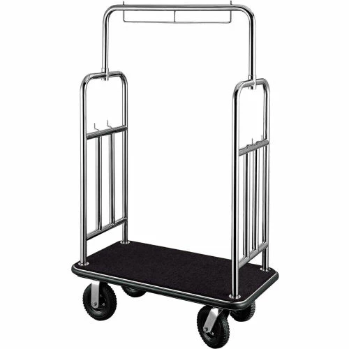 - Black carpet, bumper and black pneumatic wheels for easy maneuvering through hotel lobbies, hallways, and elevators