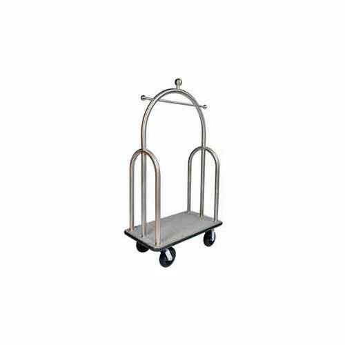 Central Specialties Ltd. CSL HD Trident Bellman Cart Stainless, Gray Carpet, Black Bumper, 8" Black Pneu