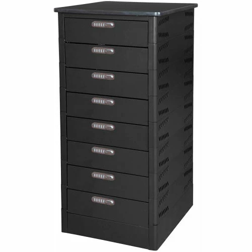 TekStak by Datum is an ideal way to provide individual secure storage for laptops, cell phones, and other electronics as well as personal valuables. Units can be configured to accommodate as many users as you need, making it an ideal storage solution for libraries, schools, government facilities, corporations, and other institutions. TekStak can provide personalized security for devices and personal items such as cell phones, wallets, and keys. Units also feature fold-down doors that require less clearance to open than hinged doors to prevent blocking access to other open compartments. Locking options include key lock, hasp lock for padlock, or electronic lock, and a laminate top is available for additional workspace.