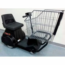 The Electro Kinetic Technologies, EZ-Shopper 8000 Electric Shopping Cart, provides safe transport of mobility impaired individuals during their shopping experience. The cart features the industry’s highest total capacity 1000 pounds, high impact Black plastic shroud, heavy duty 1-1/4″ powder coated steel welded Black frame, keyless power on/off, deep cycle AGM rechargeable batteries, on board UL, cUL listed 120/240 VAC battery charger, vinyl washable seat, and solid maintenance free non-marking tires. Rider can control speed from 0 to 2.5 miles per hour going forward and 0 to 1.5 miles per hour in reverse. Safety features include, emergency stop switch, automatic parking brake, reverse warning tone and horn, safety seat switch to insure rider is seated before operating, and battery charger with inhibit to prevent operation during charging. Cart has a turning radius of 34″. And the basket is 6600 cu. inches with a capacity of 250 Lbs.
