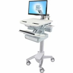This innovative, truly ergonomic and easy-to-maneuver healthcare cart features sit-to-stand height adjustment, side-to-side LCD and keyboard motion, bi-focal viewing and an adjustable back-tilt keyboard tray. Its auto-locking drawer system enables simple and efficient management of non-controlled medication.