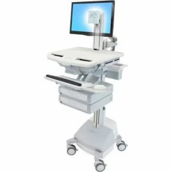 This innovative, truly ergonomic and easy-to-maneuver healthcare cart features sit-to-stand height adjustment, independent screen positioning and an adjustable back-tilt keyboard tray. Its auto-locking drawer system enables simple and efficient management of non-controlled medication.