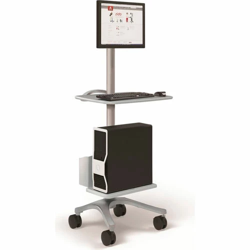 Put your computer on wheels with the space-saving Zido Computer Cart. This package comes complete and ready for mounting practically any monitor, a CPU and your keyboard and mouse. Metal construction with thick wood shelving gives this product maximum strength and durability. The fixed-height keyboard surface is positioned at 40″ (102 cm) tall, a standing working height that accommodates the widest range of users.