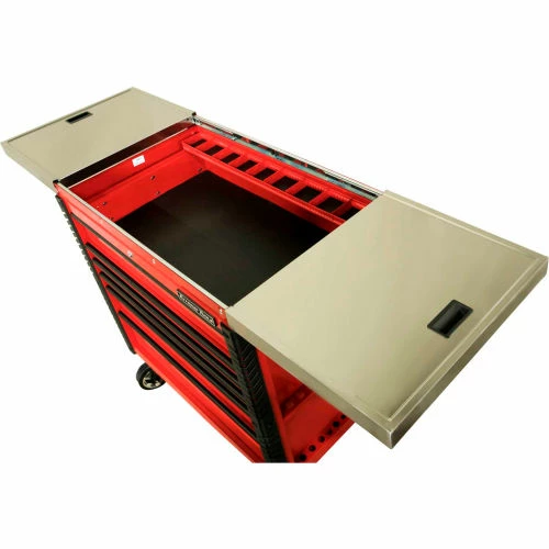 - Easy access to tools by opening the top drawer or sliding the top lid to each side
