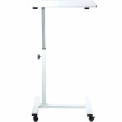 Get moving…or stay put on this mobile computer desk with adjusting capabilities. No need to purchase a cooling pad, the perforated surface allows your laptop to cool down with proper air circulation. Top swivels a full 360 degree, tilts and has a top and bottom lip to prevent papers from falling. The height adjustable frame allow user to adjust the table to their height preference. This computer stand will serve as a great option for arts and crafts.