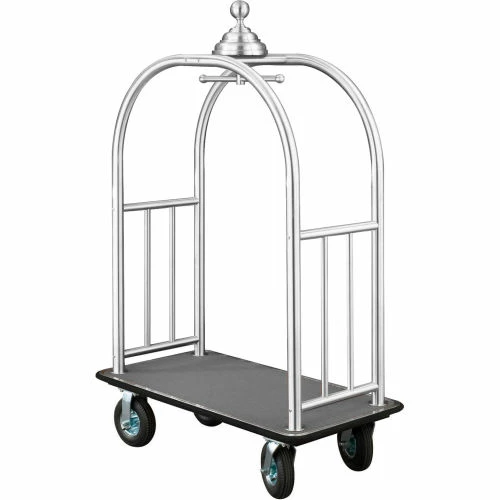 Glaro Ball Crown Bellman Cart 48x25 Satin Aluminum Gray Carpet, 4 Black Pneu Wheels