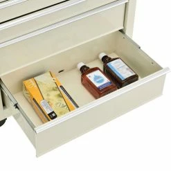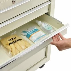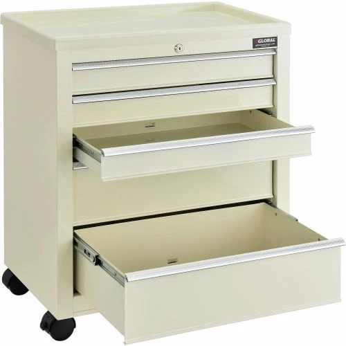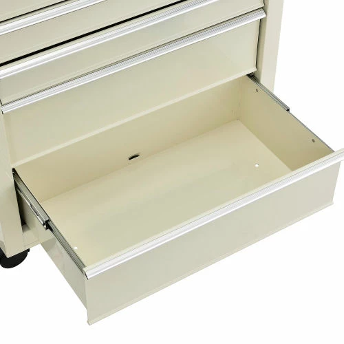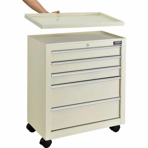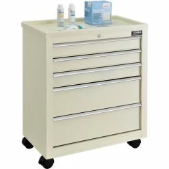 Secure medical supplies and tools easily with the Global Industrial™ 5-Drawer Medical Bedside Cart with Key Lock. This economical steel bedside cart is ideal for use in hospitals, private medical practices, nursing homes, school infirmaries, and more. Constructed of heavy-duty steel for long-lasting durability and an easy to clean ABS plastic top, this cart comes assembled with the option for users to install the casters if necessary. A central key lock secures all the drawers at the same time. 1-Year Limited Warranty.