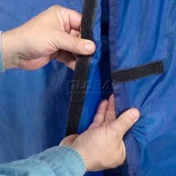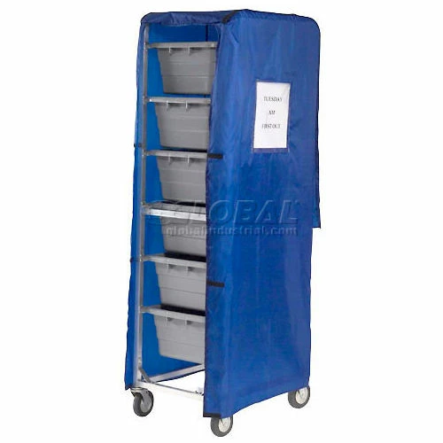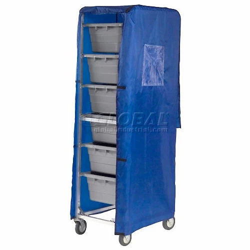 Conceals and protects contents of cart. Hook & loop tape seals for fast, easy access. Blue nylon fabric.