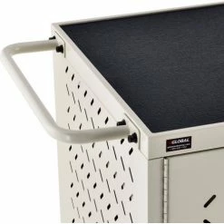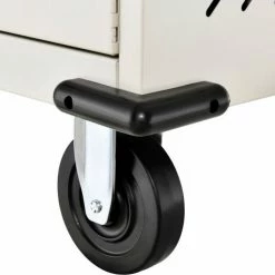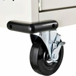 - Rolls easily on 5″ rubber casters (2 swivel with brakes, 2 rigid)