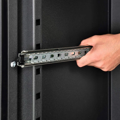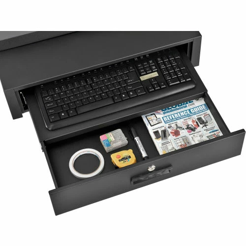 - Locking slide-out keyboard drawer 19-1/2″W x 17-3/4″D x 2-1/4″H