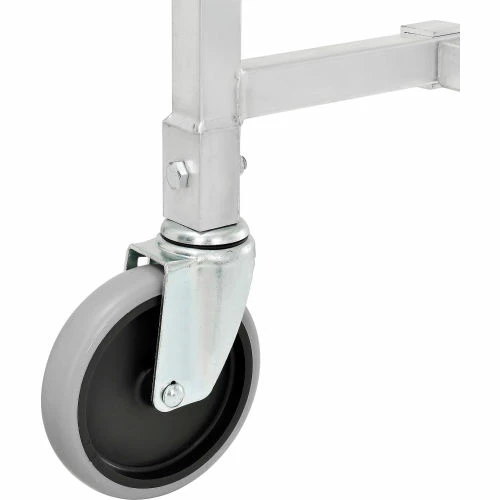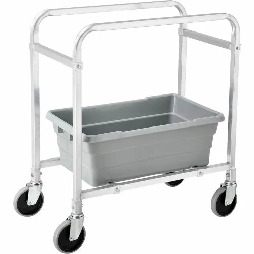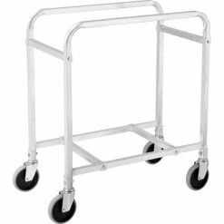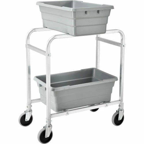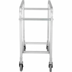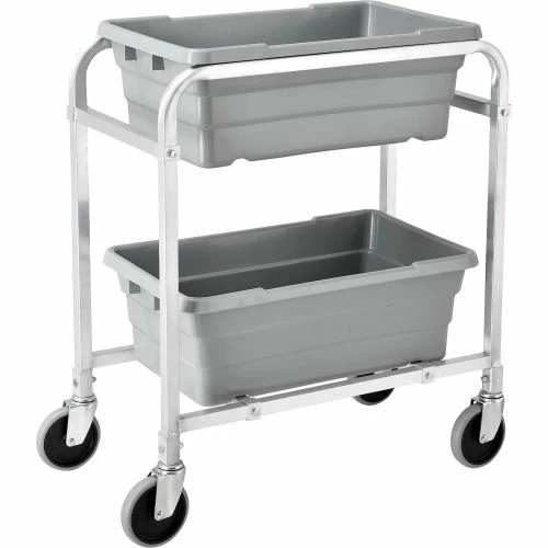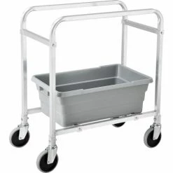 Tote box carts make transporting bin totes easy! These tote lug carts are designed for transporting and storing anything from small parts, components to food and recyclables. Durable tote carts roll smoothly on casters. Slide runners support tote boxes and allow quick, easy access. These tote carts accept plastic tote boxes that measure 25-1/8″”L x 16″”W x 8-1/2″”H (totes sold separately). Made with lightweight, tubular aluminum framing. Moves easily on 5″x1 stem caster with gray TPR wheel. NSF listing.