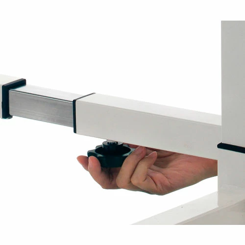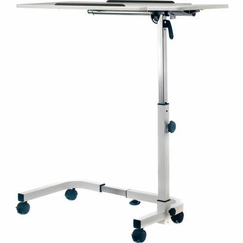 The Global Industrial™ Tilting Adjustable Height Mobile Laptop Desk is ideal for offices, schools, hospitals, medical clinics, conference rooms or homes. The large main desktop that tilts by adjusting the control knob for maximum ergonomic comfort while working, reading or writing. The 30″ white desktop is sturdy and height-adjustable for sitting or standing position. Adjust the height of the top from 27.4″ to 40″ high and secure with a simple twist-lock knob. The frame is constructed with tubular steel and durable, attractive white powder coated finish. 2″ swivel casters (2 locking) allow for easy maneuverability. Easy assembly. 1 Year Limited Warranty.