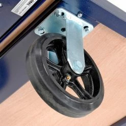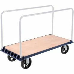 Upright 1-3/16″ dia. pipe frames are available in three different heights to allow easy access of cargo, while keeping materials upright. Uprights adjust on 3-1/2″ increments. (Upright frames sold separately.) 7 available socket positions. Truck platform is constructed of strong angle iron frame with rounded safety edges finished in scratch resistant blue enamel. Rugged 3/4″ thick plywood deck has a durable lacquer finish. Rolls smoothly on 2 swivel, 2 rigid casters. Assembles easily.