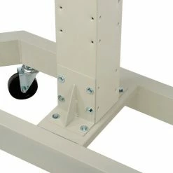 Safely mount and move flat panel monitors with this sturdy steel display that’s ideal for production floors, trade shows, lobby displays and more. The strong central 5″ square steel post holds a mobile caster base and features internal cable management. The universal VESA tilt mount holds 30-50″ screens and tilts +15° and -5° to provide secure mounting and optimal viewing. Tilt angle locks in with twist knob. The work surface has a tough plastic laminate finish, measures 36″W x 20″D x 1″ thick and is height adjustable. The mobile base has 4″ rubber casters (2 locking). This portable workstation fits through standard doorways. Easy assembly.