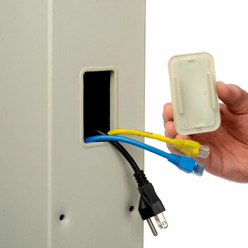 Optional keyboard tray accommodates mouse pad and locks for security, and CPU holder provides onboard storage for units up to 9″W (sold separately).