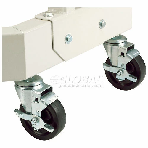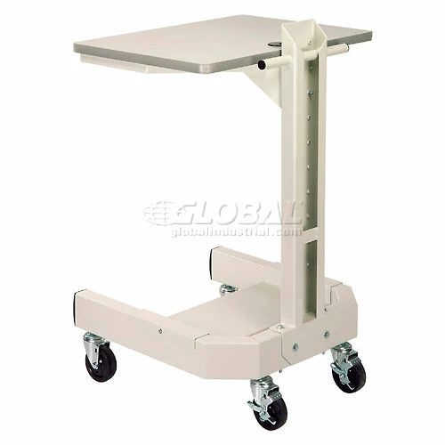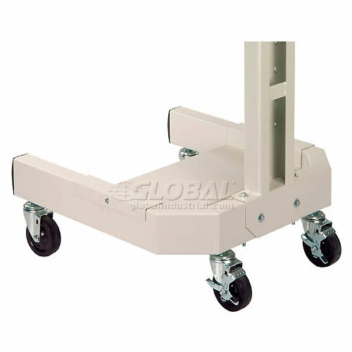 Easily fits through doorways for computer portability. Includes steel post and base with beige laminate work surface. 27″W x 20″D work surface is 1″ thick and easily mounts at various heights. Durable 2″ x 5″ center post includes built-in cable management openings. Cart moves easily on 24″W x 24-1/2″D caster base. Base features a 10″D shelf and 4″ rubber casters (2 locking). 41″ height overall. Beige powder coat finish. This cart has a total weight capacity of 250 pounds. Easy assembly.