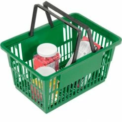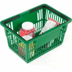 Open mesh design provides air circulation and high visibility for parts picking or grocery shopping, Lightweight, rigid construction for up to 100 lb. capacity. Sturdy, Comfortable easy grip fiberglass filled nylon handles fold back when not in use. Nestable to save space. Ideal for any retail store. Durable in design and easy to carry, these shopping baskets bring convenience to your customers. Price each, Sold in Carton Quantity. Custom colors and logo are available. Call for details.