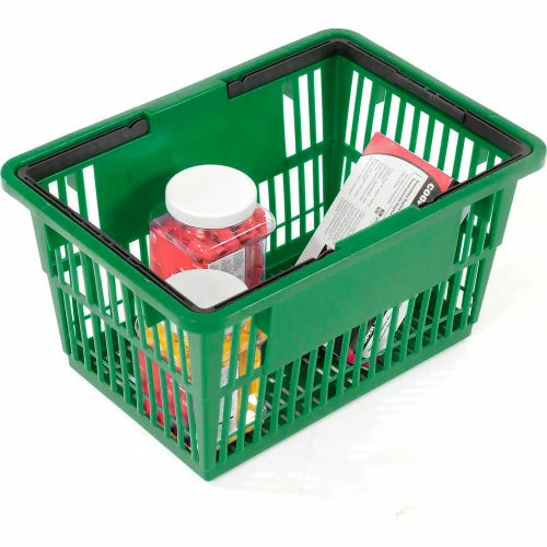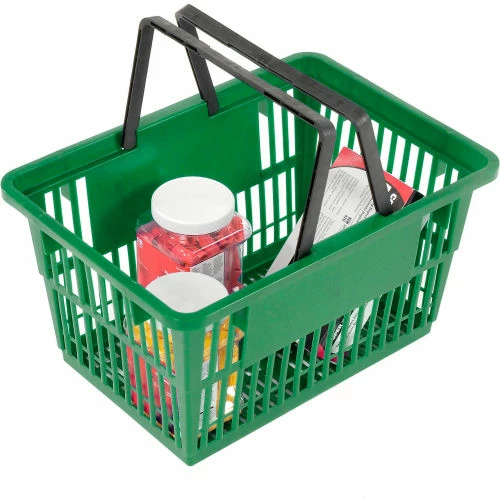 Good L ® Standard Plastic Shopping Basket with Plastic Handle 20 Liter 17"L x 12"W x 9"H Green – Pkg Qty 12