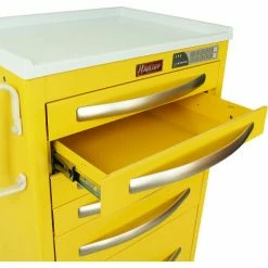 Protect your medical facility from contaminants with this lightweight aluminium isolation cart from Harloff. A-Series infection control carts are built with lightweight aluminium construction and industry best 5″ quiet rolling Tente® casters for superior mobility and ease of transport. This lightweight aluminium isolation cart features self-closing, steel ball bearing, full extension drawer slides, 30″ of vertical drawer space and fully customizable drawer configurations to perfectly match your PPE supply requirements. This cart comes with an electronic lock with keypad access for up to 250 users per cart, but up to ten different locking options are available including basic key locks, alarm access locks and badge access lock systems. Outfit your cart further with a wide variety of accessory options, alternative storage options for items that won’t fit inside a traditional drawer and your choice of drawer color and body color. Enjoy top-quality innovative storage and organization with the sleek, modern appearance of the A-Series lightweight aluminium isolation cart. The A-Series comes with curved drawer pulls, self-closing drawer slides and our expanded lock options for the perfect balance of form, function and curb appeal. With Harloff’s wide variety of locking options, accessories and alternative storage options, A-Series carts offer you unlimited choices!