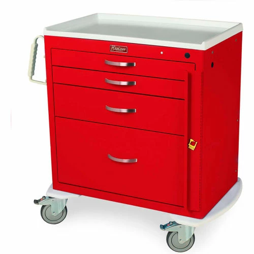 Harloff Quick Ship M Series Short Emergency Crash Cart W/ Four Drawers and Breakaway Lock, Red