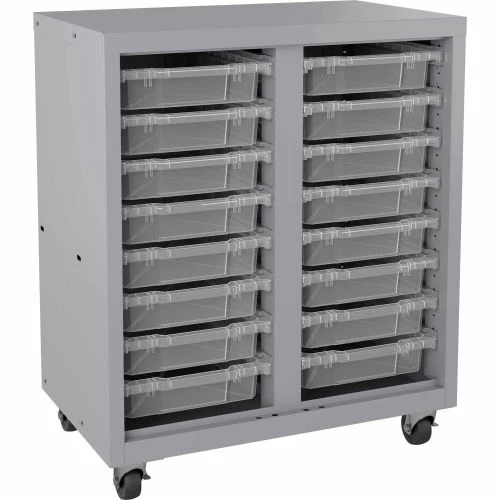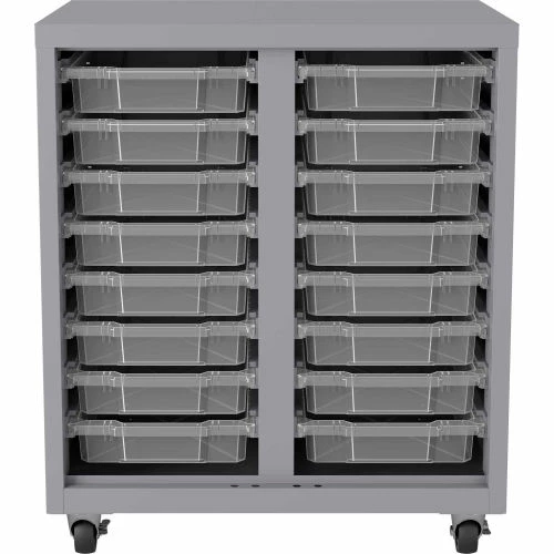 Keep equipment and supplies neat and organized with the Hirsh Mobile Bin Tower. Unit comes with 16 pull-out bins that are (12-1/4″L x 16-3/4″W x 3″H) and allows for easy transport of tools and materials. Each bin weighs 1lb. ideal for education and business uses. Durable welded steel storage unit features industrial casters and ships fully assembled. Available in Black and Platinum. Greenguard Gold Certified. Meets or exceeds ANSI/BIFMA standards.