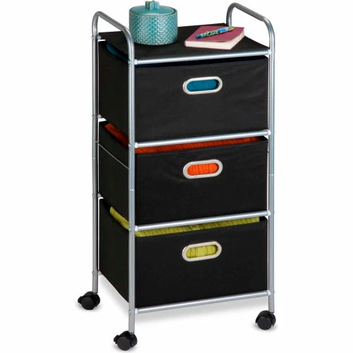 Honey-Can-Do CRT-02184 3-Drawer Rolling Fabric Cart. Getting organized has never looked better with this impressive fabric cart. The smooth rolling storage unit has three spacious drawers to hold clothes, tools, or anything else you need tucked away. A soft top surface provides even more storage space, and can double as a night-stand. Two locking wheels keep the cart securely in place as needed, and unlock for easy maneuvering around the room.