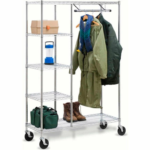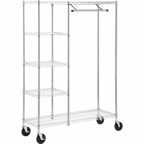 Honey-Can-Do SHF-01567 Heavy Duty Urban Valet, Chrome. Create visible, accessible storage space instantly with Honey-Can-Do industrial shelving systems. Contemporary chrome finish and sturdy steel frame make this unit the perfect blend of style and functionality. Durable enough for the mudroom, garage, or basement; this unit is both a shelving unit and garment rack. Rolling casters give mobility to this unit. The no-tool assembly allows you to construct in minutes a shelving unit that will last for years.