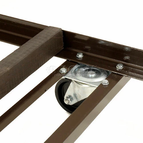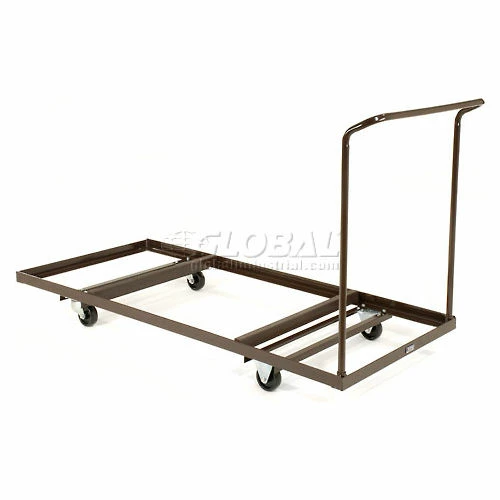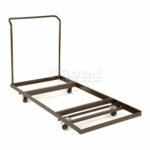 This durable mobile cart organizes and stores rectangular folding tables in a flat stacked position. Non marring 4″ heavy duty casters (two fixed, two swivel). 2″ welded angle steel construction. Brown. Easy assembly.
