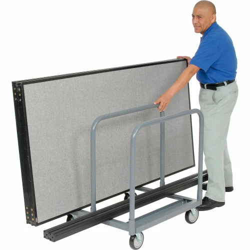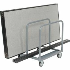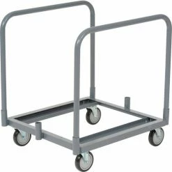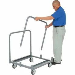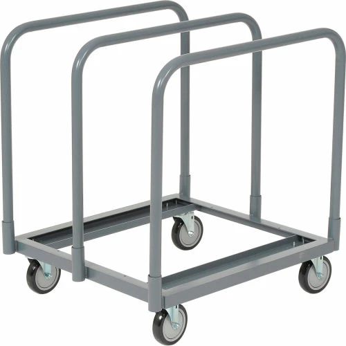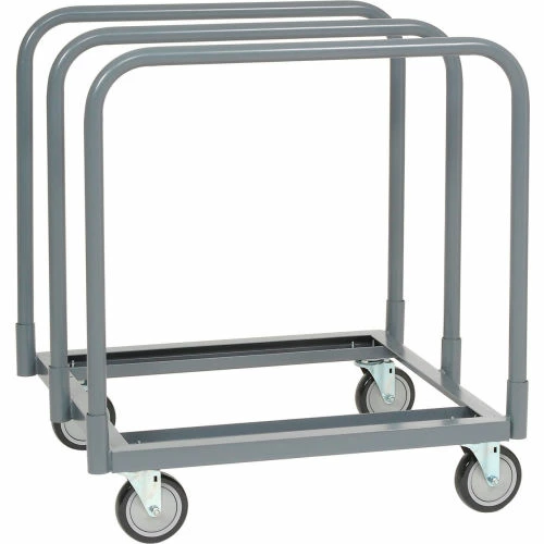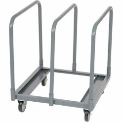 All-welded 12-gauge steel construction easily supports long bulky items for transport. Truck has three 27″ high removable 1-1/4″ diameter tubular divider rails with 12″ wide load bays. 31″L x 28″W x 35″H overall with 8″ deck height. Rolls easily on 5″ polyurethane swivel casters. Durable powder coat finish.
