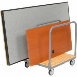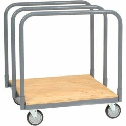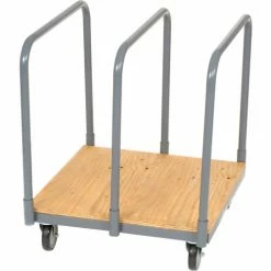 All-welded 12-gauge steel construction easily supports long bulky items for transport. Truck has three 27″ high removable 1-1/4″ diameter tubular divider rails with 12″ wide load bays. 31″L x 28″W x 35″H overall with 9″ deck height. Rolls easily on 5″ polyurethane swivel casters. Durable powder coat finish. Strong 3/4″ plywood deck helps to protect cargo.
